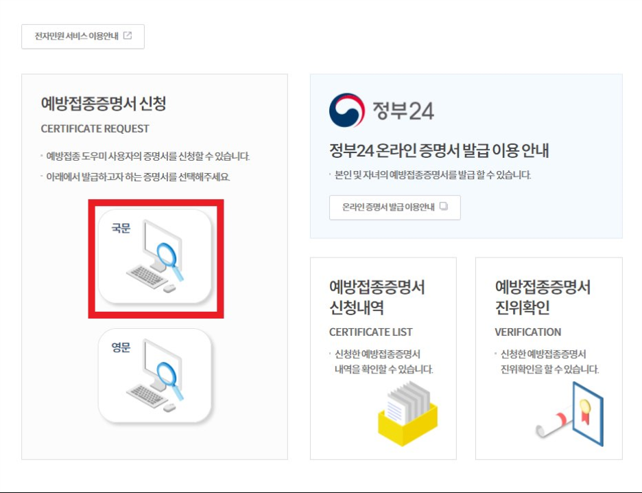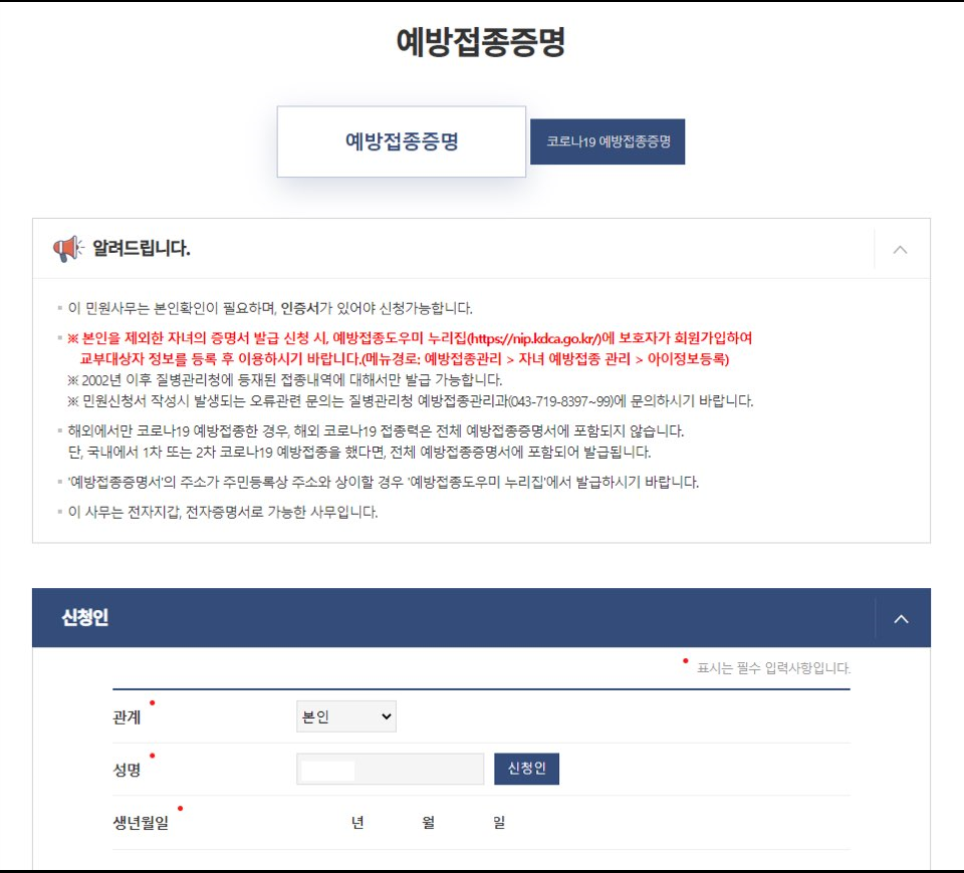예방접종증명서 인터넷 발급 신청 두번째 방법